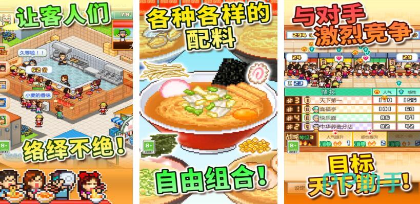 作为系列初代作品,《开罗拉面店》奠定了该IP的核心玩法框架。玩家拥有完全自主的店铺空间划分权——收银台位置、灶台朝向、座位密度均可拖拽调整。员工系统支持招聘、升职与专项培训,直接影响出餐速度与顾客回头率。季度性“全国拉面大赛”提供曝光加成与稀有称号奖励,助力小店实现从街角摊位到连锁品牌的跃迁。