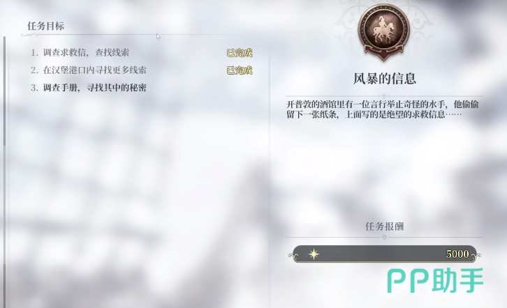 该事件并非固定刷新,需玩家主动推进前置线索链:首先进入开普敦酒馆,与NPC“风暴观测员”展开对话,接取【风暴预警】任务;随后前往汉堡图书馆,通过解谜或交互获取核心道具——神秘风暴瓶。此道具具备环境预判功能,可实时提示雾天临近状态,是触发后续事件的必要条件。