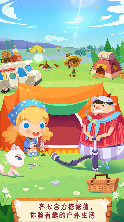 《糖糖郊游记》还原露营搭建、皮划艇航行、自然采集等12类户外活动场景,所有角色建模采用圆润线条与柔和光影处理,增强低龄用户视觉亲和度。每个关卡匹配专属生态环境——如森林溪流、湖畔草地与山丘坡道,并嵌入简易建设机制,例如帐篷分区规划、篝火堆叠逻辑与观景台组装挑战。
