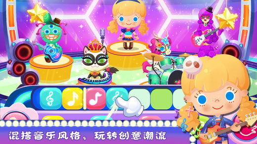《糖糖宠物派对》围绕宠物照护与集体活动展开,提供染色、剪裁、配饰搭配等造型服务选项。舞台布景支持多层元素叠加,含背景板更换、灯光色调调节与道具位置微调。音乐玩法采用色块拖拽式节奏触发机制,孩子通过匹配颜色序列控制乐器音效输出,同步完成节拍感知与手眼协调训练。