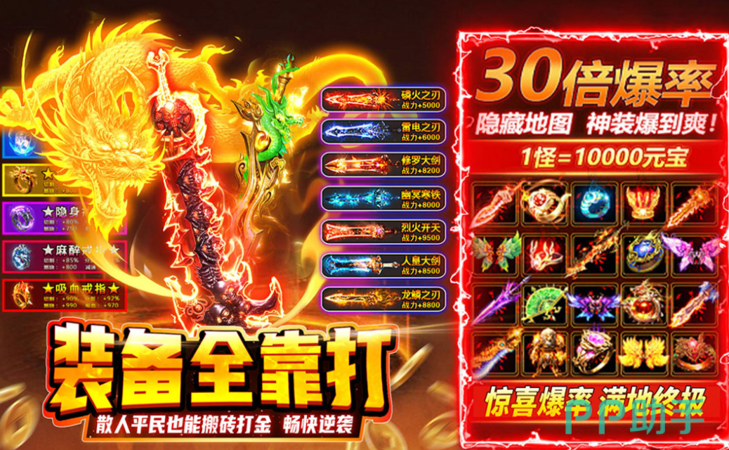 本作主打“装备全靠打”的硬核回收机制,地图中设有多个隐藏区域,需玩家逐步探索解锁。其核心优势在于稳定且可观的装备掉落概率,无论单人闯关还是组队副本,散人玩家均可通过常规战斗积累元宝、金币及稀有道具。技能特效采用动态光影渲染,战斗节奏紧凑,配合低门槛的成长路径,让新手也能快速融入玛法大陆的对抗生态。