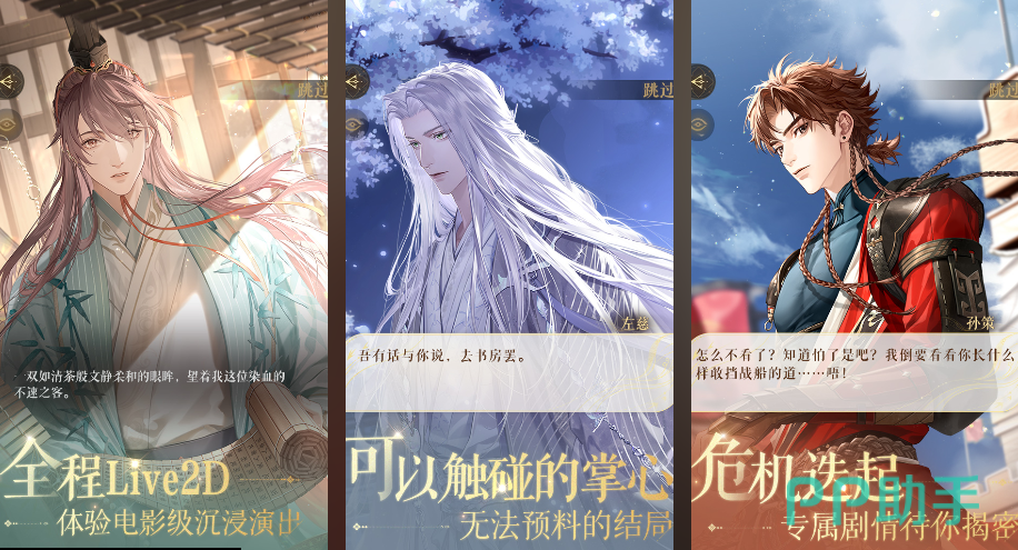 本作构建于东方幻想美学体系之上,以复国公主视角展开宏大叙事。朝堂倾轧、江湖纷争等背景设定并未稀释情感浓度,反而强化了“逆境共生”的关系张力。四位可攻略男主兼具智谋、武略与人格魅力,其个人传记与主线剧情高度交织,确保情感发展具备充分铺垫与合理动因。游戏采用卡面叙事+时间轴回溯双轨机制,使每一次关键选择都服务于关系加固而非割裂。所有路线均以“并肩而立”为终点,无背叛、失忆、单方面牺牲等BE常见要素。
